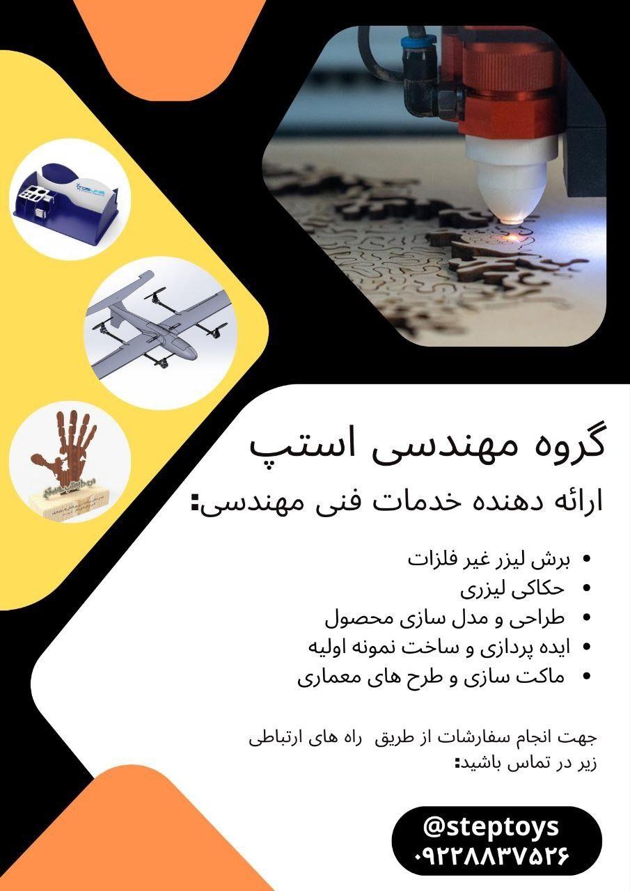 گروه مهندسی استپ ارائه دهنده خدمات فنی مهندسی # برش لیزر غیر فلزات # حکاکی لیزر # طراحی و مدل سازی محصول #ایده پردازی و ساخت نمونه اولیه # ماکت سازی و طرح های معماری # هدایایی تبلیغاتی برای مدارس و شرکت ها