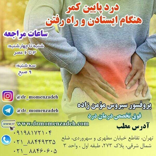 مطب تهران - خیابان مطهری - تقاطع سهروردی شمالی - ضلع شمال شرقی تقاطع - پلاک 273 - طبقهی اول - واحد6 شنبه تا چهارشنبه 4 الی 6 عصر سه شنبه و پنجشنبه 8 الی 11 صبح شماره نظام : 47847 فلوشیپ فوق تخصصی درد شناسی تهران،خيابان مطهري،تقاطع سهروردي شمالي،پ٢٧٣،ط اول،واحد۳ ☎۰۲۱ -۸۸۴۶۰۶۰۵ و ☎۰۲۱- ۸۸۴۴۹۳۳۵ 📲۰۹۱۹۸۱۷۲۱۰۴ www.drmomenzadeh.com شنبه تا چهارشنبه 4 الی 6 عصر سه شنبه و پنجشنبه 8 الی 11 صبح دکتر سیروس مومنزاده فوق تخصص دردشناسی درمان درد،عمل لیزر دیسک کمر ،دیسک گردن، فلوشیپ فوق تخصصی درد شناسی تهران،خيابان مطهري،تقاطع سهروردي شمالي،پ٢٧٣،ط اول،واحد۳ ☎۰۲۱ -۸۸۴۶۰۶۰۵ و ☎۰۲۱- ۸۸۴۴۹۳۳۵ 📲۰۹۱۹۸۱۷۲۱۰۴ www.drmomenzadeh.com
